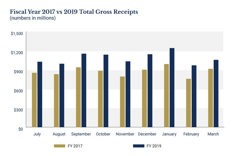 Over the next three years the legislature raised an estimated $1.1 billion in new tax and fee revenue, nearly half of which was passed last year. Simultaneously, oil prices began to rebound near the end of 2017 to almost $70 per barrel, the highest prices since 2014, before the recession began. As the economy began to recover towards the end of 2017, so too did state revenues. That growth continued throughout 2018 and resulted in record revenue collections for fiscal year 2018 at $12.1 billion. Fiscal year 2019, the current fiscal year, has followed the same trend. Even with a fall in oil prices over the holiday season, the economy continued to grow. As of now state revenue collections have outpaced last fiscal year’s collections by $1 billion, with three more months to go. State revenue collections have seen year-over-year increases 24 months in a row.