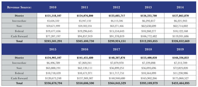 With 4,500 new students over the last 10 years, per-pupil revenue has grown by 25 percent, from $13,663 per student to $17,146 per student. That’s more than $425,000 for a classroom of 25 students.