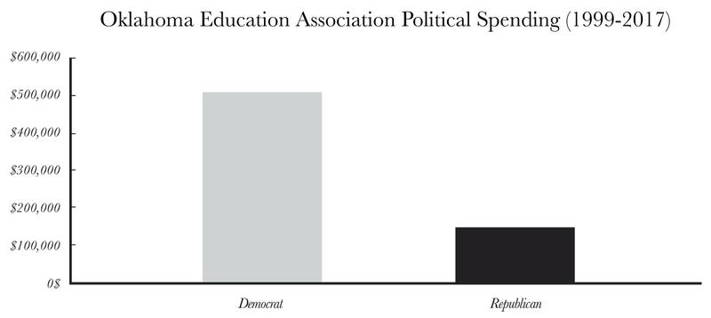 Public-sector unions often affect how government operates. The 2018 teacher walkout, for example, was organized and funded in part by the Oklahoma Education Association (OEA) and the National Education Association (NEA). This sort of political activity and spending has become common for many public-sector unions in Oklahoma and across the country. A website called Public Union Facts has collected data on this spending for thousands of unions.