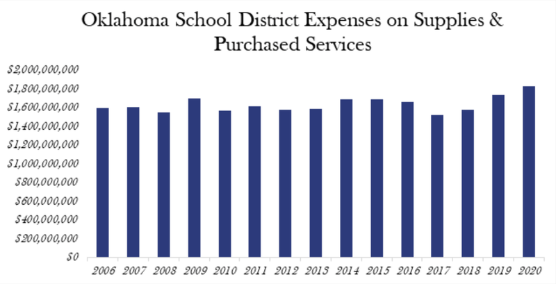 The practice of hiring private companies to provide services to school districts is quite common. In 2020, Oklahoma public schools spent $1.8 billion on purchased services and supplies. Most of this money goes to for-profit businesses: construction-and-maintenance companies, repair companies, accounting firms, janitorial services, and more.