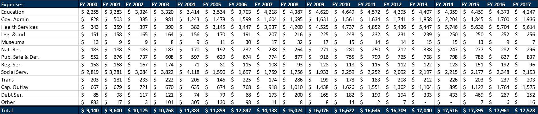 In fiscal year 2008, total spending by Oklahoma’s state government was $15.02 billion. In fiscal year 2017, the most recent fiscal year for which full data are available, total state government spending in Oklahoma topped $17.53 billion.