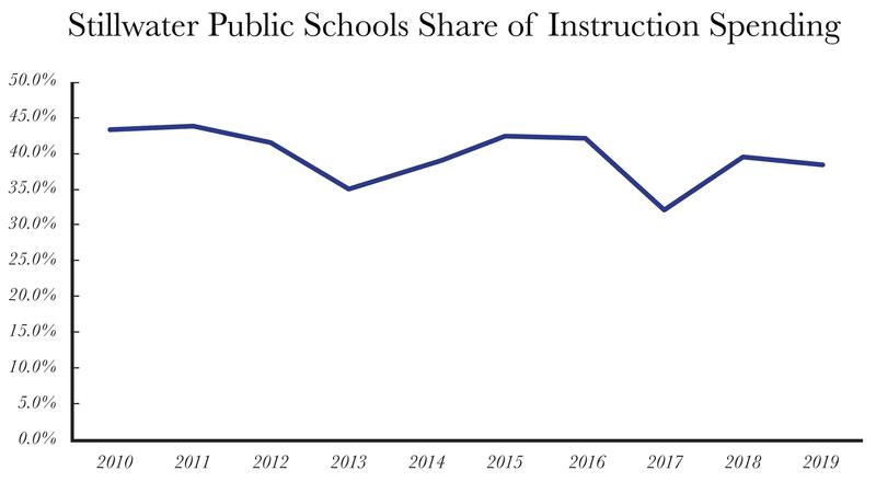 Even while per-pupil revenue has been increasing, spending on instruction has been falling at SPS. Since 2010, spending on instruction as a share of total spending has fallen from 43% to 39%, with per-pupil instruction spending at $4,586 in fiscal year 2019.