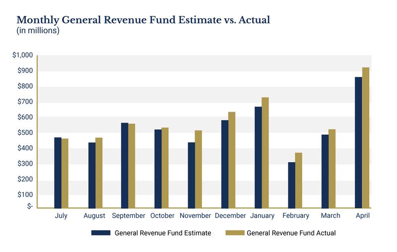 The GRF came in above the estimate by 7.1 percent. Currently the GRF has collected $4.7 billion and has grown by $850 million compared to last year. For the fiscal year, GRF collections are now $355 million ahead of the estimate. This estimate is what lawmakers used to determine the current state budget