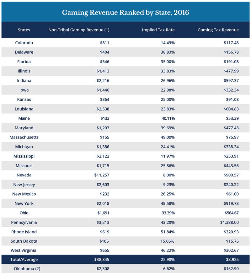 [2] Class III only. Does not include $2 billion in class II machines untaxed by the state. Total Oklahoma gaming revenue was $4.3 billion in 2016