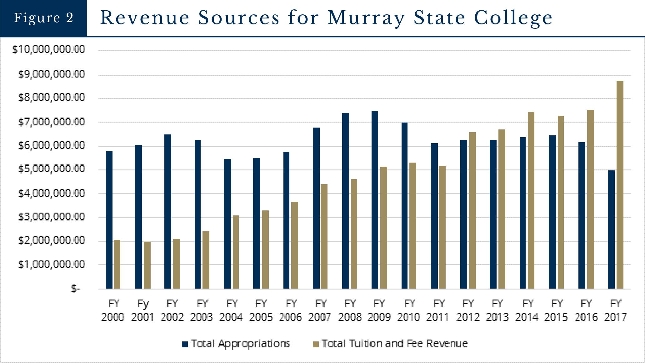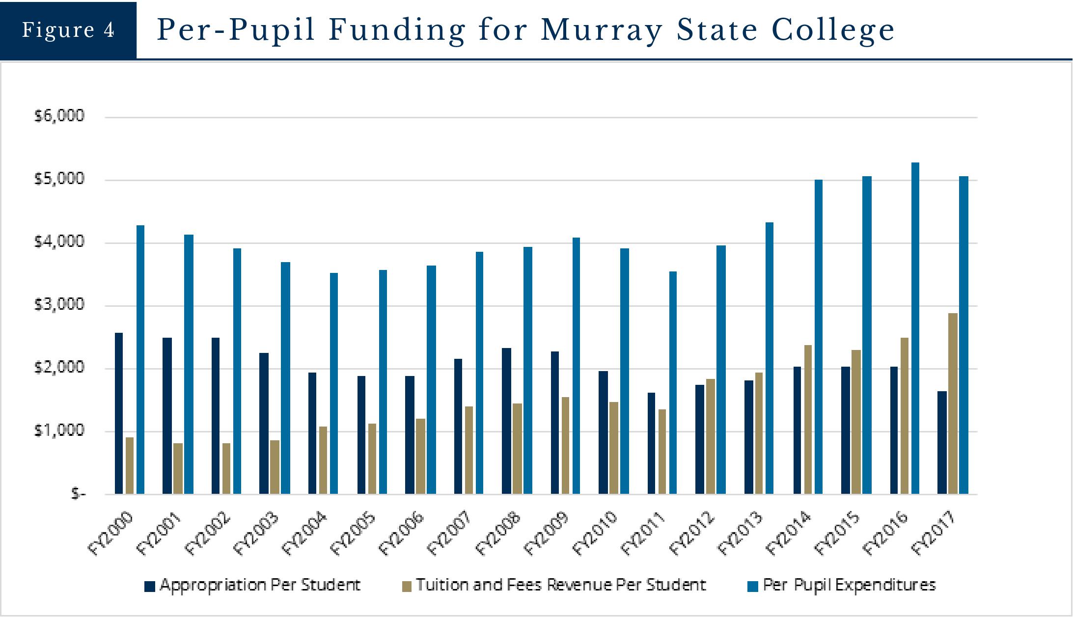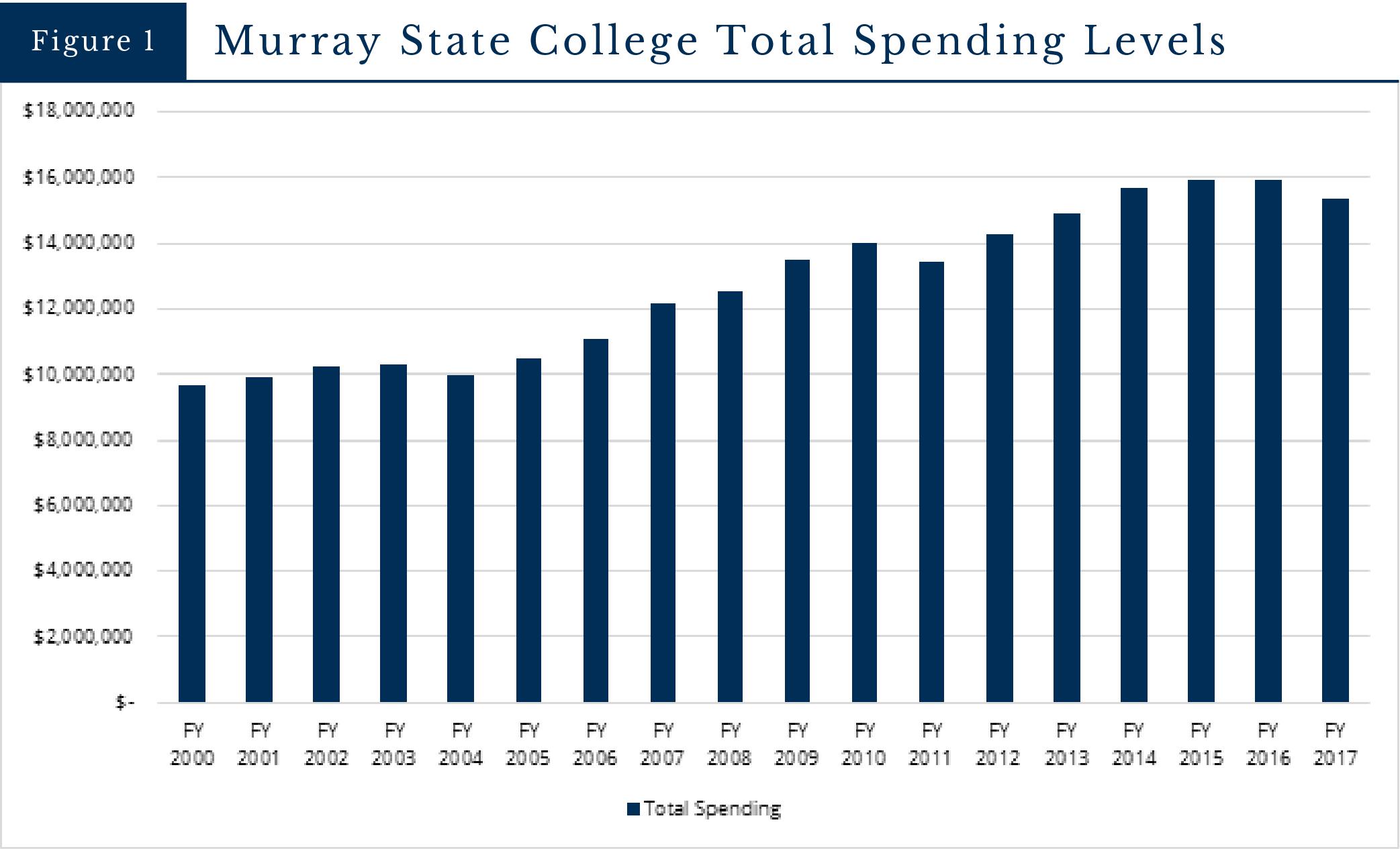 As higher education spending goes up, more and more of the cost is pushed to students and their families. OCPA has assembled data for all Oklahoma state institutions of higher education—find it here. Below is information on Murray State College. The first chart, below, shows total spending.