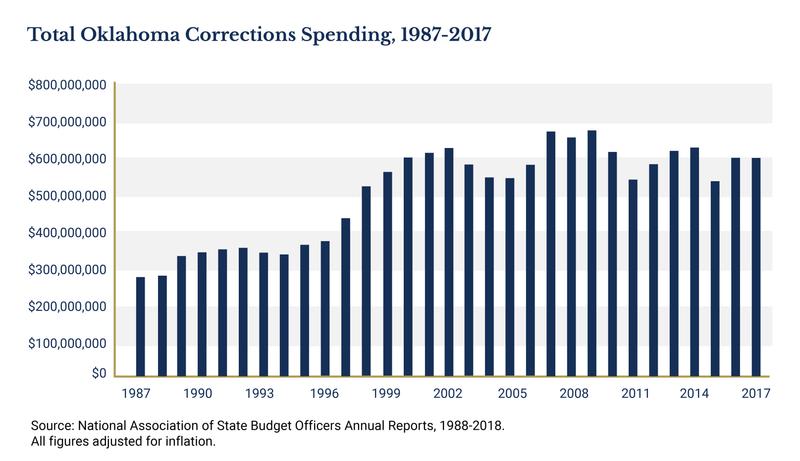 Oklahoma Department of Corrections (DOC) expenditures totaled $602 million in 2017, a 122 percent increase from 1987 ($272 million).