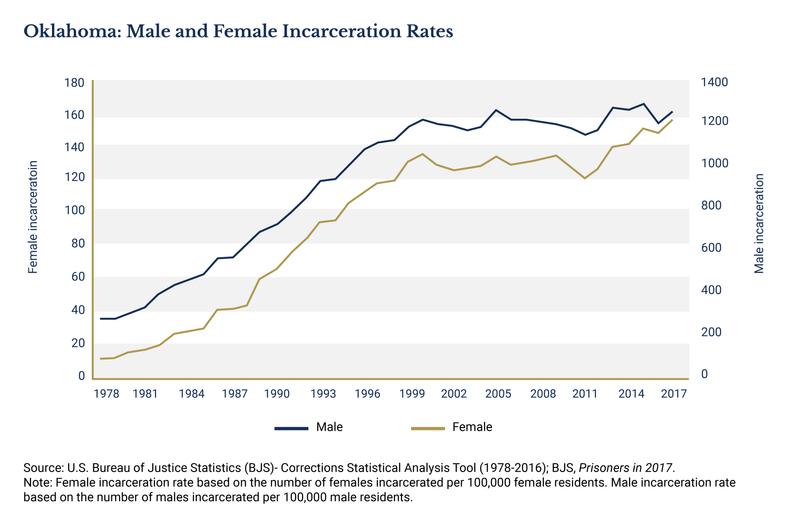 Oklahoma’s female incarceration rate has increased even more rapidly over the past few decades.