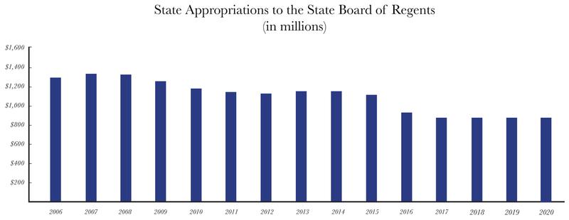 According to the latest available data, state appropriations to higher education have fallen slightly over the last few years. Historically, higher education has received more than $1 billion in annual appropriations until 2017, when the legislature decided to reduce the state’s appropriation.
