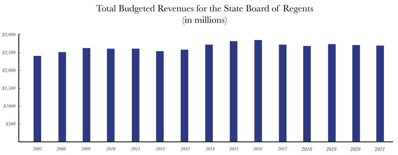 Source: Oklahoma State Regents Educational and General Budgets Summary and Analysis; inflation adjustments by author to 2020 dollars using the CPI inflation calculator