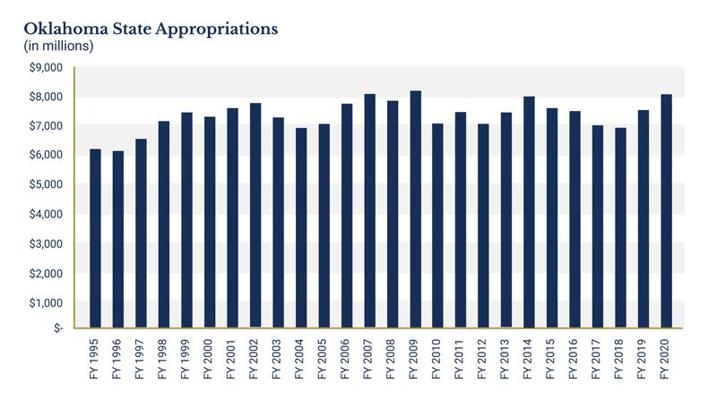 Source: Oklahoma Comprehensive Annual Financial Reports, various years; 2018 Oklahoma Comprehensive Annual Financial Report