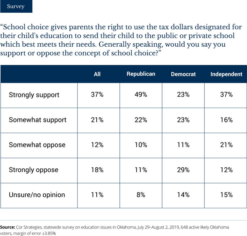 Yet another scientific survey of Oklahoma voters has found strong support for parental choice in education: