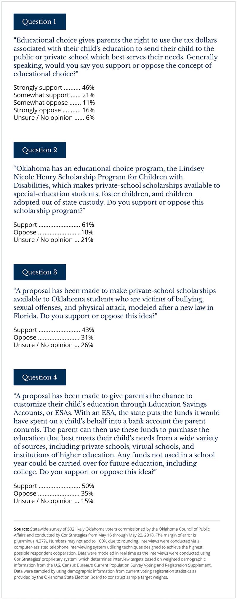 Any poll, of course, is only a snapshot of public opinion at the time the poll is administered. But this latest snapshot does add to a growing body of evidence showing that Oklahomans favor educational choice.