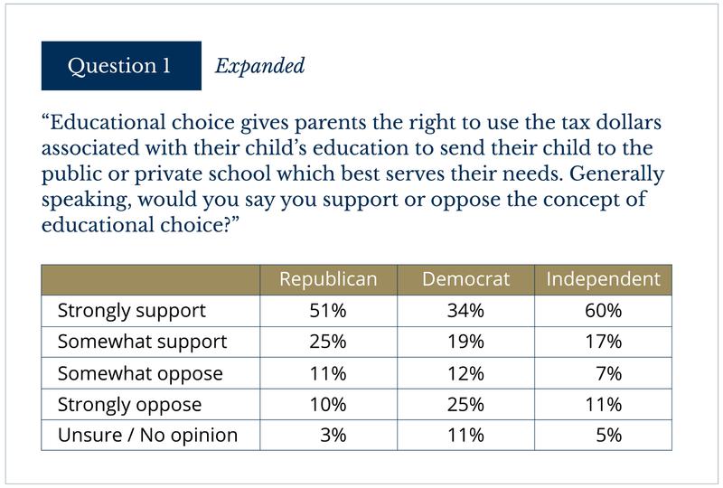 And while Democratic voters support educational choice by a healthy margin (53 percent to 37 percent), what’s striking is the overwhelming support from Republicans and Independents.