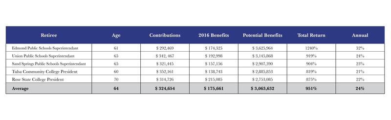The table above shows the average contribution for the top five retirees and the total potential benefit over their expected retirement term, as well as the average annual benefits they receive. Pay a visit to OCPA’s data tool to see more.