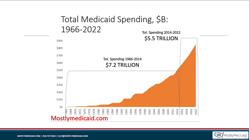 Clay Farris, practice lead of client services for Mostly Medicaid, a consulting firm, noted that Medicaid’s nationwide spending totaled $7.2 trillion from 1966 to 2014, including both state and federal funding. The program is projected to spend $5.5 trillion total from 2014 to 2022.